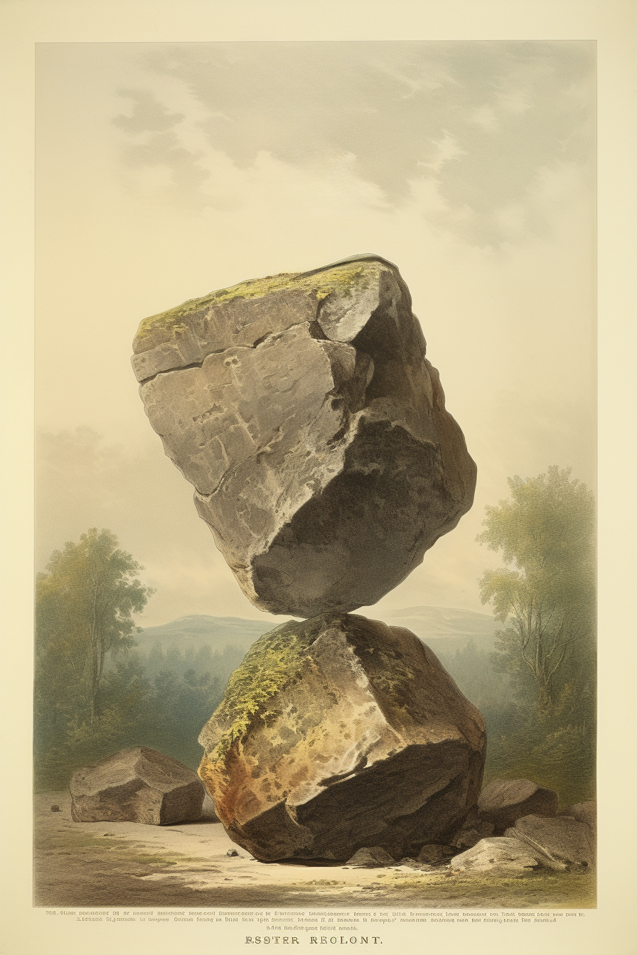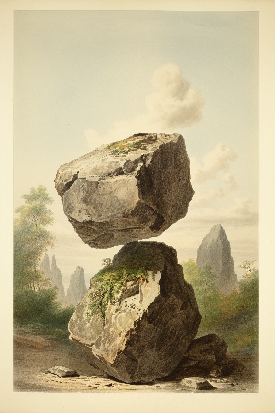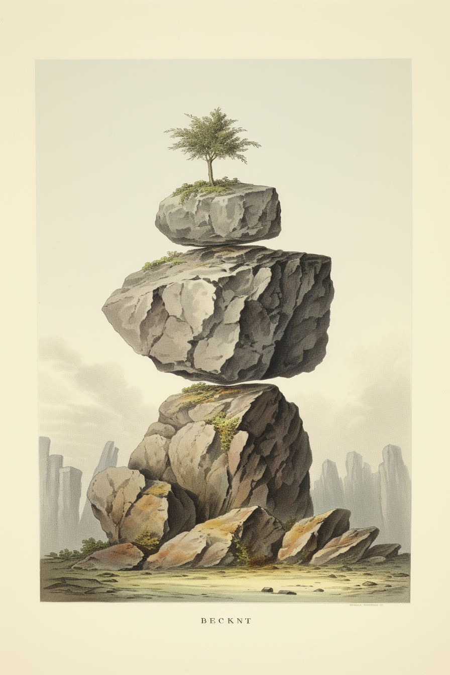 The "floating rocks" project has been meticulously created through a careful iterative process using Midjourney and Adobe Firefly artificial intelligence.